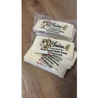 Hazır tasarım Pamuk etiketlerimizden seçebilirsiniz yada markanızın bilgilerini sipariş esnasında kişisellestirme alanına not bırakabilirsiniz.